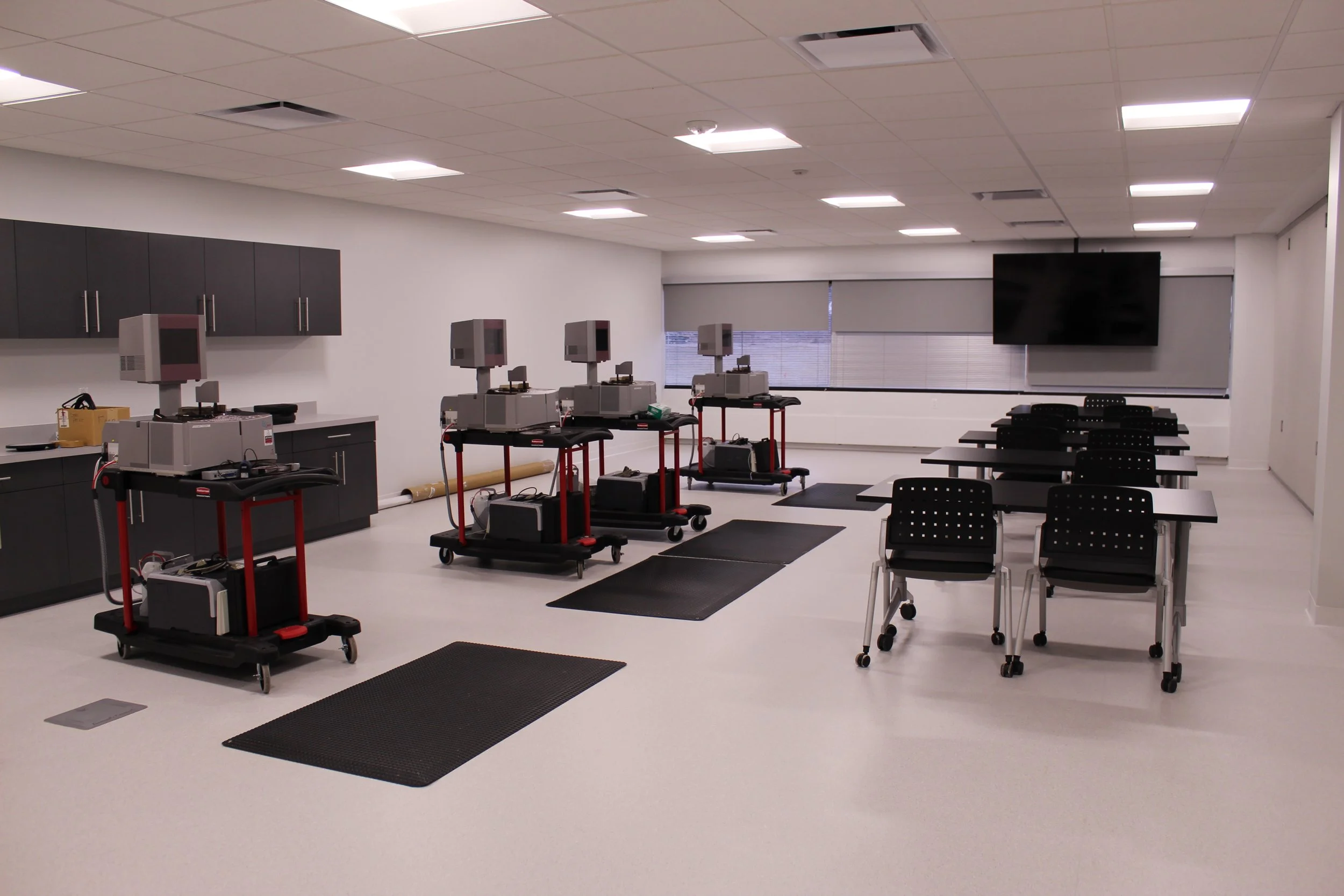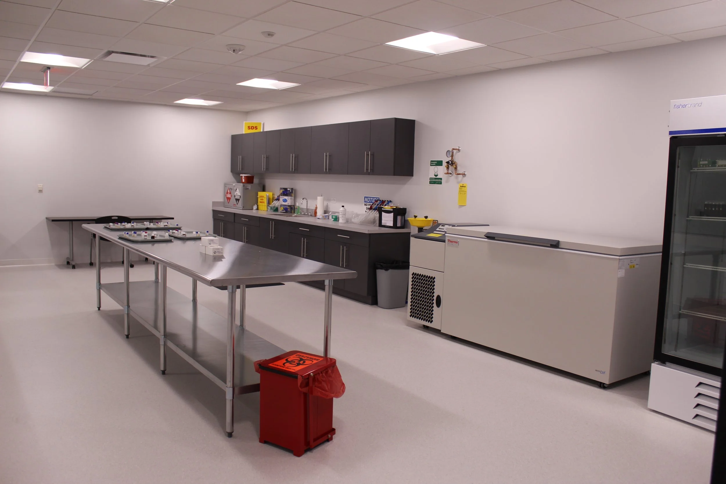 This US headquarters for Diagnostica Stago, a Global Pharmaceutical/Research & Development company, featured a training center, research labs, and offices. This project was done in multiple phases so clients could operate as normal in the same location as construction was being done. Design role included architectural, interior design and branding design, construction administration, and project management on equipment and swing spaces coordination.