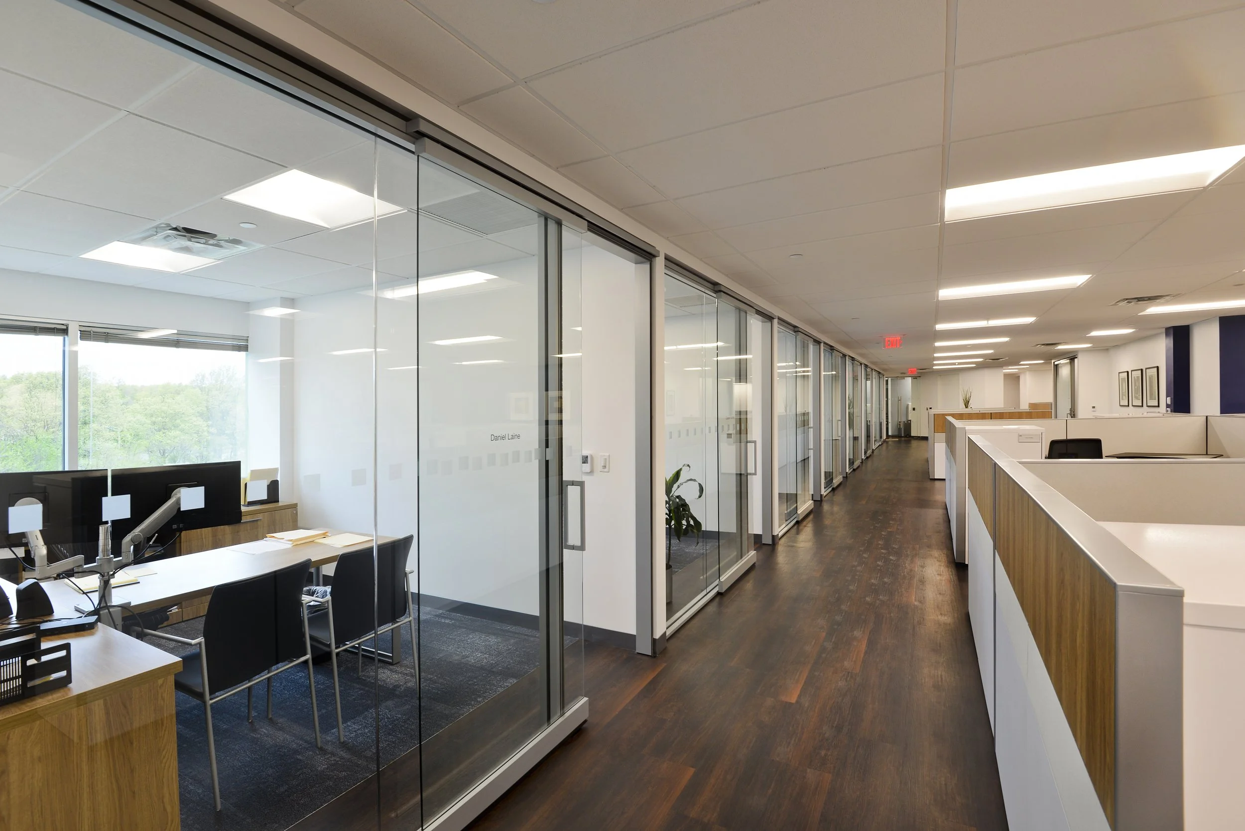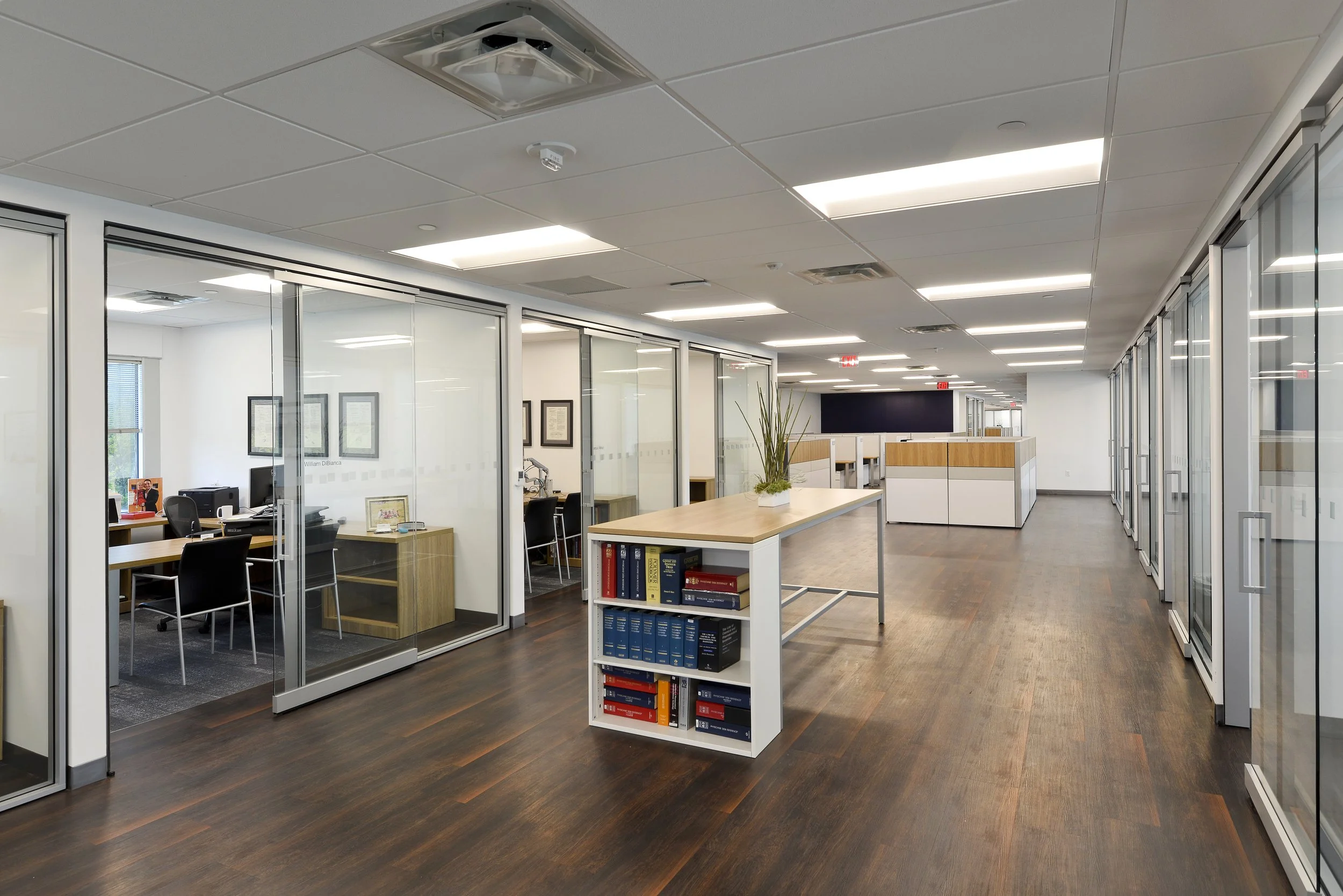 Lerner David, a practice focused on intellectual property, has relocated to 20 Commerce Drive after nearly 50 years in Westfield. Its new home features modern design elements such as offices with full-height glass fronts and slider doors, allowing for natural light, along with high-end furniture and finishes selected by Kimmerle Newman Architects in tandem with the law firm.