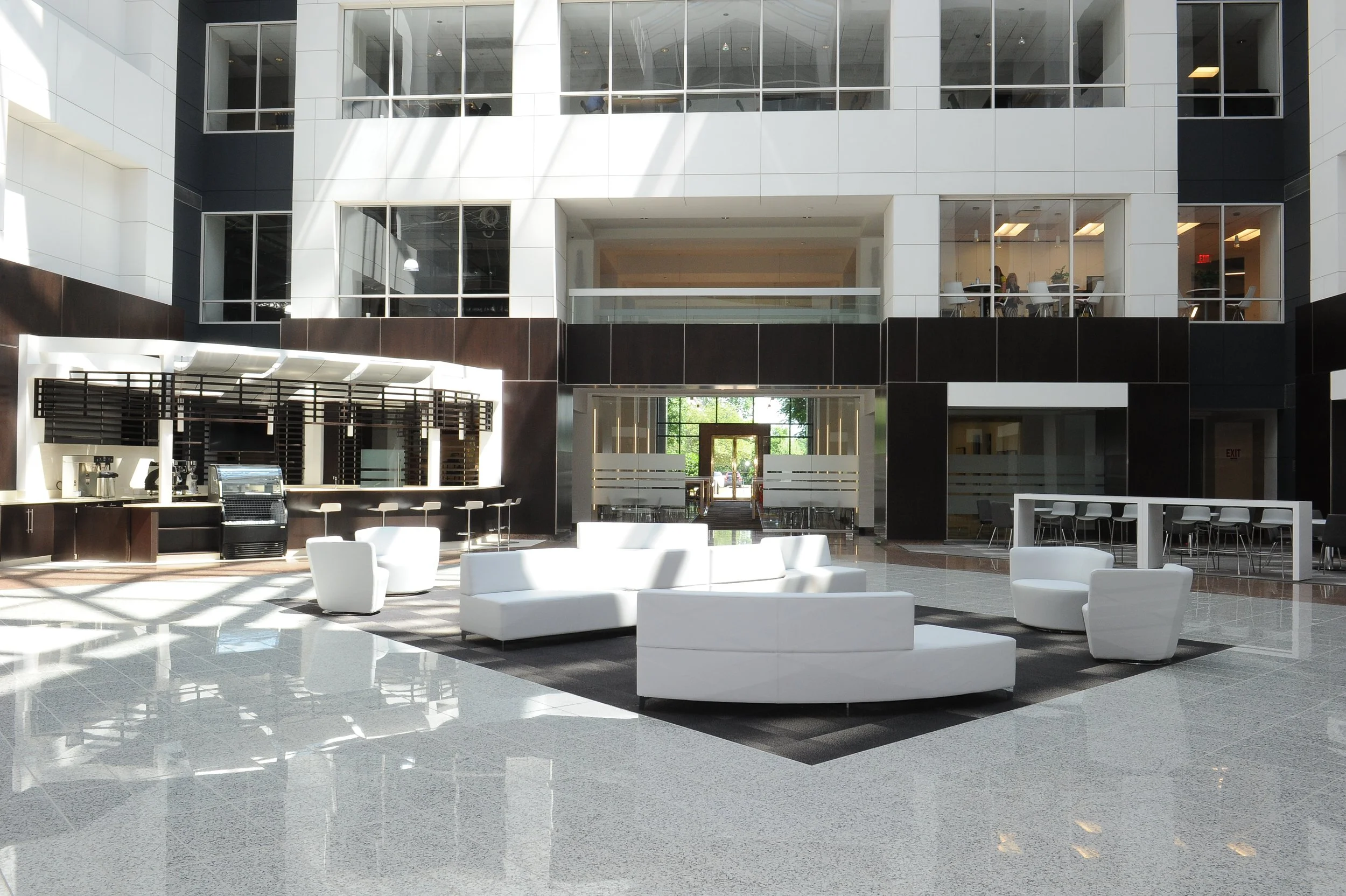A complete overhaul of the lobby and amenity spaces within this corporate center brought new life to the cafeterias, conference center, and fitness center. This overall work was coupled with two tenant spaces within the building, creating even stronger bonds with the owner and tenants alike.
