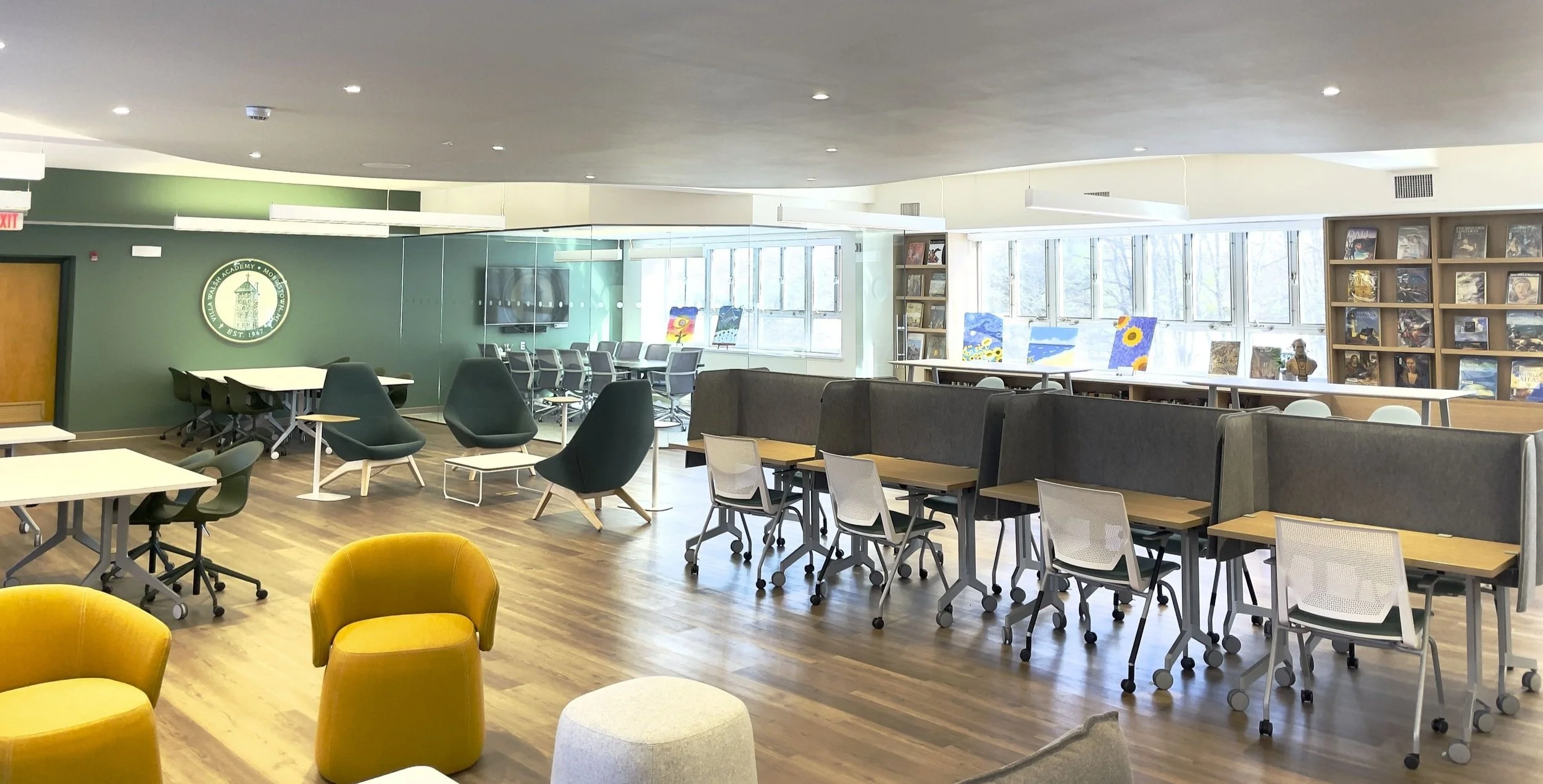 Nothing is more critical in today’s educational setting than the integration of online technologies. The reinvention of Villa Walsh’s library center is a major step in the modernization of the campus and provides an interactive and energetic learning environment replacing age old library stacks and carrels of a by-gone era.